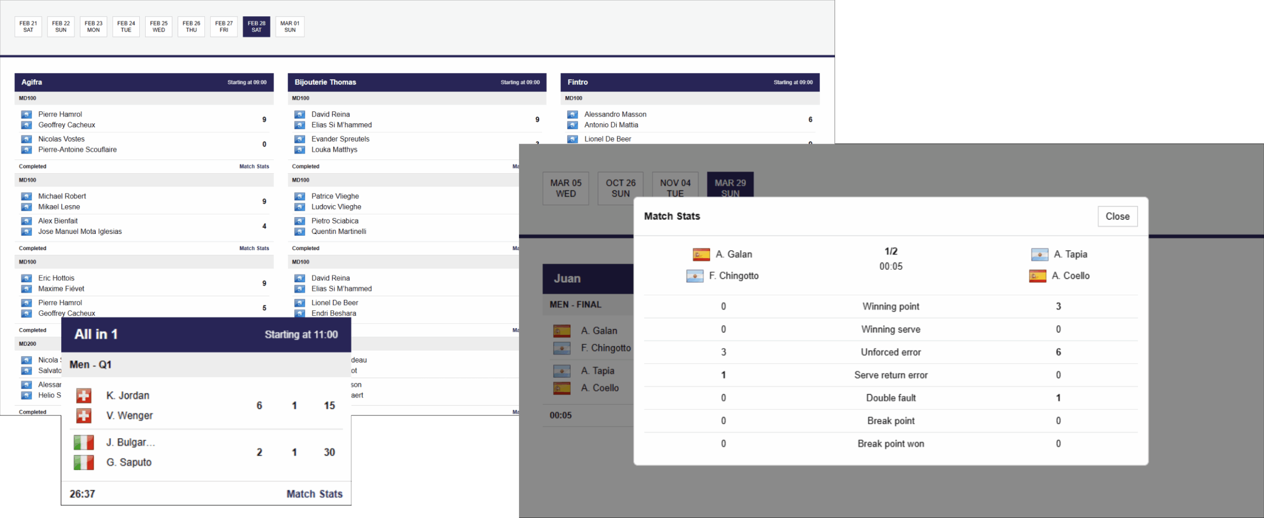 - Shortcode WP : [padel_tournament key=“%idkey%”]